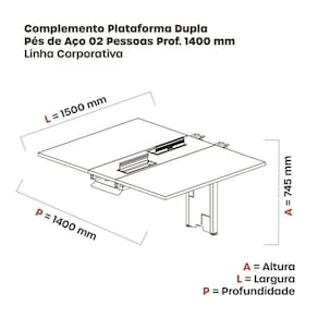 Complemento de mesa plataforma Para Coworking para 2 pessoas é uma ótima opção para quem busca um ambiente de trabalho moderno, funcional e confortável. Esse complemento de mesa possui uma estrutura de aço resistente e elegante, com espaço para a instalação de tomadas e conectores. Além disso, é permitindo adequar com mais plataformas para criar uma interação dinâmica e colaborativa, transfonando seu espaço de trabalho produtivo, criativo e agradável.
