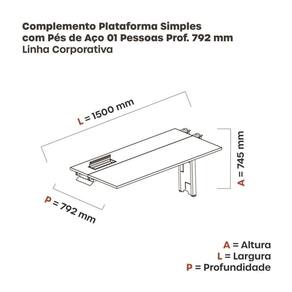 complemento de mesa corporativa adequado para ambientes de coworking. Esse complemento é projetado para ser utilizado em conjunto com outras mesas, permitindo aumentar o número de lugares disponíveis. Ela combina funcionalidade e estilo, proporcionando um espaço colaborativo confortável para trabalhar. Você pode adicionar essa mesa a outras unidades para criar um ambiente expansível conforme necessário. Produto Montado: Sim Acompanha Manual de Instalação: Sim Ambiente Principal: Escritório codigo_ean: 7909903512388 Complexidade da Montagem: Baixa: pode ser montado por uma pessoa sozinha Cor: Branco/Cinza Cor do Produto: Branco/Cinza Cor Flex: Não Cor Interna: Branco/Cinza Dobrável: Não Escala de Brilho: Semi-Fosco Espessura do Tampo: 25 mm Formato: Retangular Itens Inclusos: 1 complemento para plataforma Linha ou Coleção: Linha Corporativa Manual de Montagem e Instalação: https://product-hub-prd.madeiramadeira.com.br/883434/documents/7d8babb6-1bcf-497b-9b87-326f0096ec8eorma20Complemento20Simples.pdf Material da Estrutura: Aço Material do Tampo: MDP Material dos Pés: Polipropileno Material Principal: MDP Montagem Flex: Não Necessita Montagem: Sim Origem do Produto: Nacional Peso: 26,608 kg Possui Painel: Não Possui Passa Cabos: Não Possui Porta Objetos: Não Possui Portas: Não Possui Prateleiras: Não Possui suporte para CPU: Não Possui Suporte para Teclado: Não Possui Vidro: Não Recomendações de Uso, Manutenção e Limpeza: Utilize pano úmido com para limpeza Sapatas Niveladoras: Sim Sistema de Montagem: Parafuso Suporta Até (kg): 30 kg