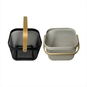 Cesta Organizador em Tela Metálica com Alça de Madeira - 24,5 x 24,5 x 18 cm Organize com charme, ventile com praticidade e decore com estilo A Cesta Organizadora em Tela Metálica com Alça de Madeira é o item perfeito para quem busca unir funcionalidade com design contemporâneo. Fabricada com estrutura metálica resistente e acabamento em pintura fosca, esta cesta proporciona um visual sofisticado e ao mesmo tempo discreto - ideal para compor diferentes ambientes da casa com harmonia e personalidade. características Técnicas: Material do corpo: Tela metálica em aço com pintura eletrostática acabamento fosco, durável e resistente à corrosão . material das alças: Madeira natural envernizada acabamento suave ao toque, com efeito visual quente e acolhedor . dimensões: 24,5 cm largura 24,5 cm profundidade 18 cm altura Vantagens e Aplicações: Organização multifuncional: ideal para armazenar toalhas de mão, rolos de papel, cosméticos, sabonetes, acessórios de cabelo, temperos, pacotes de alimentos, potes de mantimentos, talheres, panos de prato, entre outros. estilo versátil: combina perfeitamente com banheiros modernos, cozinhas abertas, lavanderias planejadas, home offices, espaços gourmet ou prateleiras decorativas. boa ventilação: a estrutura vazada de tela permite a circulação de ar, ideal para produtos que precisam respirar, como esponjas, alimentos secos ou tecidos. fácil de transportar: as alças de madeira anatômicas facilitam o manuseio mesmo quando a cesta está cheia. visual decorativo: o contraste entre o metal preto e a madeira clara oferece um toque natural e elegante à decoração. Images Ilustrativas Dica de uso:Monte um conjunto com outras cestas similares e crie um sistema de organização modular. Combine com etiquetas ou tags para uma organização ainda mais eficiente e charmosa Essencial para quem valoriza ambientes organizados, funcionais e visualmente agradáveis. com esta cesta, até as pequenas tarefas do dia a dia ganham um toque de bom gosto e praticidade.