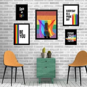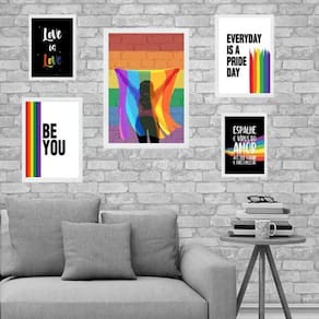 Composição 5 quadros lgbt - bandeira - com vidro Moldura: madeira preta Informações do produto tire todas as suas dúvidas no descritivo abaixo: decoração para quarto, sala, cozinha, escritório, área gourmet e muito mais. Chega de paredes vazias medidas - kit composto por 5 quadros, sendo 2 quadros com medida 18x24cm, 2 quadros com 24x33cm e 1 quadro com medida 33x45cm. Material do papel - papel fotográfico brilhante de altíssima resolução acabamento - todos os quadros são acompanhados de vidro para proteção da imagem. - moldura em madeira maciça na cor preta ou branca conforme produto escolhido e pendurador . - os quadros são embalados de forma segura com plástico bolha com camada dupla de acordo com o tamanho dos quadros. Garantia - garantia de 3 meses. Meu quadro chegou. Como posso fixá-lo Você precisa apenas de um martelo e um prego, pois os quadros já vão acompanhados de penduradores. Esta é a forma mais indicada. Como posso limpar meu quadro A limpeza é feita como um móvel comum da sua casa. Apenas um pano seco ou espanador são suficientes para tal