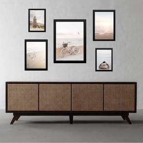 Composição 5 quadros praia soft - bicicleta Moldura: madeira preta Informações do produto tire todas as suas dúvidas no descritivo abaixo: decoração para quarto, sala, cozinha, escritório, área gourmet e muito mais. Chega de paredes vazias medidas - kit composto por 5 quadros, sendo 2 quadros com medida 18x24cm, 2 quadros com 24x33cm e 1 quadro com medida 33x45cm. Material do papel - papel fotográfico brilhante de altíssima resolução acabamento - todos os quadros são acompanhados de uma película de acetato para proteção da imagem. - os quadros são embalados de forma segura com plástico bolha com camada dupla de acordo com o tamanho dos quadros. Garantia - garantia de 3 meses. Meu quadro chegou. Como posso fixá-lo Você precisa apenas de um martelo e um prego, pois os quadros já vão acompanhados de penduradores. Esta é a forma mais indicada. Caso prefira, você pode utilizar uma fita dupla face neste caso, sugerimos de alta qualidade para evitar que descole e seu quadro caia . Como posso limpar meu quadro A limpeza é feita como um móvel comum da sua casa. Apenas um pano seco ou espanador são suficientes para tal