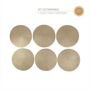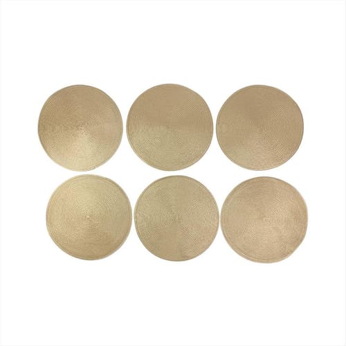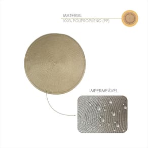 Posta com sofisticação e praticidade. Seu design trançado em formato circular valoriza a apresentação das refeições e protege a superfície da mesa contra manchas, calor e arranhões. Fabricado em poliéster de alta qualidade, esse jogo americano une resistência e durabilidade. É fácil de limpar e possui acabamento firme, garantindo um visual impecável por muito mais tempo. Destaques do produto: Estrutura trançada com visual sofisticado Protege a mesa contra sujeiras, calor e umidade Versátil e elegante, combina com diferentes estilos e decoração Especificações: Formato: Redondo Diâmetro: 38 cm Material: 100% poliéster Contém: 6 unidades Transforme sua mesa com charme, praticidade e bom gosto. Ideal para quem valoriza detalhes na decoração e deseja uma mesa sempre bem posta Imagens Ilustrativas Marca: Não Informado