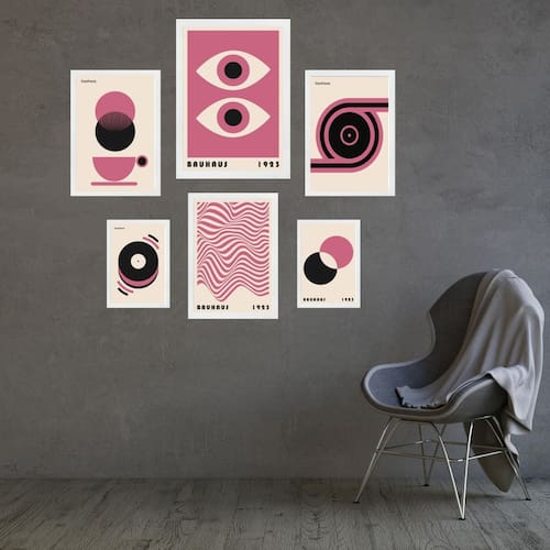 Composição 6 quadros artes bauhaus rosa e bege - com vidro Cor: moldura preta Informações do produto tire todas as suas dúvidas no descritivo abaixo: decoração para quarto, sala, cozinha, escritório, área gourmet e muito mais. Chega de paredes vazias medidas - kit composto por 6 quadros, sendo 2 quadros com medida 18x24cm, 3 quadros com 24x33cm e 1 quadro com medida 33x45cm. Material do papel - papel fotográfico brilhante de altíssima resolução acabamento - todos os quadros são acompanhados de vidro para proteção da imagem. - moldura em madeira maciça na cor preta ou branca conforme produto escolhido e pendurador . - os quadros são embalados de forma segura com plástico bolha com camada dupla de acordo com o tamanho dos quadros. - de 3 meses. Meu quadro chegou. Como posso fixá-lo Você precisa apenas de um martelo e um prego, pois os quadros já vão acompanhados de penduradores. Esta é a forma mais indicada. Como posso limpar meu quadro A limpeza é feita como um móvel comum da sua casa. Apenas um pano seco ou espanador são suficientes para tal Ean: 7901039703906