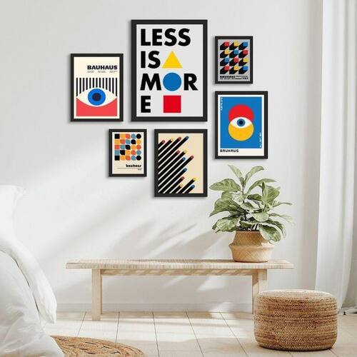 Composição 6 quadros bahaus - less is more Moldura: madeira preta Informações do produto tire todas as suas dúvidas no descritivo abaixo: decoração para quarto, sala, cozinha, escritório, área gourmet e muito mais. Chega de paredes vazias medidas - kit composto por 6 quadros, sendo 2 quadros com medida 18x24cm, 3 quadros com 24x33cm e 1 quadro com medida 33x45cm. Material do papel - papel fotográfico brilhante de altíssima resolução acabamento - todos os quadros são acompanhados de uma película de acetato para proteção da imagem. - os quadros são embalados de forma segura com plástico bolha com camada dupla de acordo com o tamanho dos quadros. - de 3 meses. Meu quadro chegou. Como posso fixá-lo Você precisa apenas de um martelo e um prego, pois os quadros já vão acompanhados de penduradores. Esta é a forma mais indicada. Caso prefira, você pode utilizar uma fita dupla face neste caso, sugerimos de alta qualidade para evitar que descole e seu quadro caia . Como posso limpar meu quadro A limpeza é feita como um móvel comum da sua casa. Apenas um pano seco ou espanador são suficientes para tal Marca: Não Informado