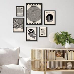 Composição 6 quadros bauhaus preto e branco Moldura: madeira preta Informações do produto tire todas as suas dúvidas no descritivo abaixo: decoração para quarto, sala, cozinha, escritório, área gourmet e muito mais. Chega de paredes vazias medidas - kit composto por 6 quadros, sendo 2 quadros com medida 18x24cm, 3 quadros com 24x33cm e 1 quadro com medida 33x45cm. Material do papel - papel fotográfico brilhante de altíssima resolução acabamento - todos os quadros são acompanhados de uma película de acetato para proteção da imagem. - os quadros são embalados de forma segura com plástico bolha com camada dupla de acordo com o tamanho dos quadros. - de 3 meses. Meu quadro chegou. Como posso fixá-lo Você precisa apenas de um martelo e um prego, pois os quadros já vão acompanhados de penduradores. Esta é a forma mais indicada. Caso prefira, você pode utilizar uma fita dupla face neste caso, sugerimos de alta qualidade para evitar que descole e seu quadro caia . Como posso limpar meu quadro A limpeza é feita como um móvel comum da sua casa. Apenas um pano seco ou espanador são suficientes para tal Ean: 7898994437178