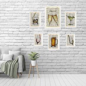 Composição 6 Quadros Vintage Bar - Bebidas Diversas - Vidro