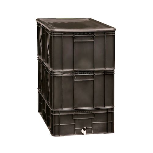 Kit caixa para compostagem orgânica 131 litros, para casa ou apartamento. Conjunto de caixa para compostagem orgânica que pode ser feita em casa ou apartamento. Compacta e simples a composteira é ideal para pequenos ambientes. Especificações Técnicas: Material: Termoplástico de alta resistência, PEAD polietileno de alta densidade Dimensional externo: C600 x L400 x A563,5 Capacidade interna: 131 litros Peso líquido: 6,03kg Sugestões de Aplicação: Reciclagem de resíduos orgânicos. Ean: 7898077293622