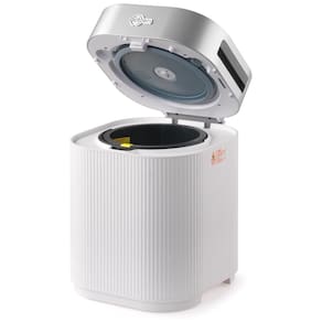 Este compostor é ideal para uso interno, operando silenciosamente e sem produzir odores desagradáveis. Equipado com um filtro de carvão, ele transforma restos de comida em composto sem o cheiro típico de lixo.