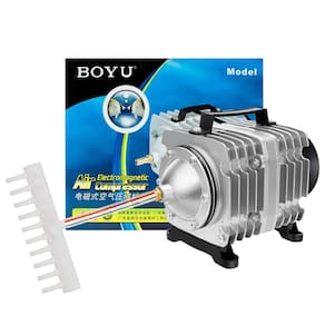 Compressor de ar eletromagnético oxigenador / aerador Boyu ACQ-008 110L/min para lago ou aplicação em indústria, acompanha divisor de ar de 10 saídas O compressor de ar Boyu ACO é fabricado em alumínio injetado, que garante a pressão sem perdas, é um equipamento indispensável para manter os níveis de oxigênio em lagos, além de inúmeras aplicações no setor industrial. O que você precisa saber antes de comprar: Características: Super potente Baixo consumo de energia Extremamente resistente Indicado para oxigenação de grande porte Não gera resíduos de óleo ou lubrificante no ar Ruído alto Motor eletromagnético linear Fluxo intenso e constante de ar Alumínio intejado Pode ficar ligado 24h por dia Saída de ar principal para mangueira de 8mm Acompanha divisor de ar de 10 saídas com saída de ar para mangueira de 4mm Tomada padrão 2 pinos Pés emborrachados evita o deslocamento e diminui o ruído decorrente da vibração do motor Auxilia na oxigenação da água e realiza a troca de gases tóxicos presente na água por meio do movimento gerado pelas bolhas de ar Precisa ficar protegido de sol e chuva Não possui controle de vazão Não acompanha mangueira de silicone de 4mm e pedras porosas Compre nesse anúncio diretamente com um revendedor oficial Sunsun no Brasil. Especificações técnicas: Marca: Boyu ou JAD enviada conforme disponibilidade Modelo: ACQ-008 Dimensões: 14 x 15 x 25 cm Potência: 100W Vazão: 110L/min Saídas de ar principal: 1 Divisor de ar com 10 saídas Pressão: 0.040mpa Tamanho do fio: 120cm Peso: 4,164 Kg Aplicação: Oxigenação de lagos e tanques de criação de peixes Oxigenação de baterias de aquários Enchimento de brinquedo infláveis Enchimento de colchão inflável Para Ferramenta de aplicação de pintura Bolhas de ar em paredes, balcões, tubos com água de festas eventos Hidroponia Máquina de gravação e corte de laser Cervejaria artesanal Envase de bebidas Indústria plástica, psicultura, gráfica, têxtil, química, agrícola e alimentícia. Conteúdo da embalagem: 1 compressor de ar 1 pedaço de mangueira de 8mm 1 divisor de ar com 10 saídas 1 bico adaptador de mangueira 1 manual de instruções Dicas de segurança: 1- Mantenha o compressor de ar sempre acima do nível da água, assim, caso acabe a energia, anula o risco de a água retornar pela mangueira de ar e posteriormente causar um curto-circuito no aparelho. 2- Não estique o fio da tomada completamente, ligue o equipamento sempre deixando uma folga formando uma espécie de barriga no fio, assim, caso escorra água pelo fio, ela não entrará em contato com a água. 3- Deixe em local seco, protegido do sol e chuva. Recomendações para uma maior durabilidade do compressor: Efetuar a limpeza dos acessórios a cada 15 dias Obrigado pela visita e boas compras Atenção Nossas imagens e textos são registrados e com direito de uso reservado a essa loja e as lojas parceiras devidamente autorizadas. Marca: Não Informado