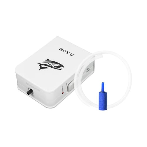 O compressor de ar Boyu a bateria é uma solução simples para transporte de iscas vivas e também manter os níveis de oxigênio em seu aquário quando ocorrer falhas na transmissão de energia elétrica.