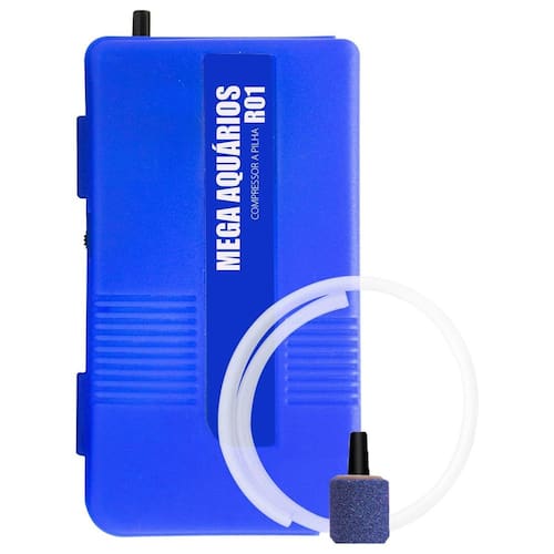 O compressor de ar a pilha Mega Aquários é uma solução simples para manter os níveis de oxigênio em seu aquário quando ocorrer quedas de energia. É um equipamento portátil e fácil de usar, é excelente para transporte de isca viva e peixes.