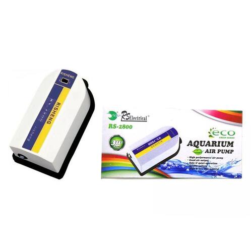 Compressor de ar para aeração. Compressor silencioso, eficiente e baixo consumo de energia. Saída de 2,5lt/min de 3w ideal para enfeites e cortinas de bolhas aumentando a oxigenação do aquário. Marca: Rs aqua Ean: 7893199393854