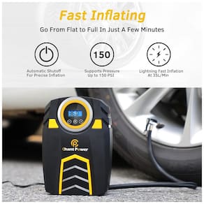 Motor forte e inflação rápida Este compressor de ar portátil para o pneu do seu carro é capaz de fornecer uma pressão máxima de 150 psi e um fluxo de ar de 35L , Min. Você pode encher o pneu de um carro de 0 a 35 psi em apenas quatro minutos. Tela LCD e corte automático A bomba de pneus de 12 V parará na pressão de ar predefinida. Ele também se desligará antes de superaquecer. O display digital pode medir a pressão do pneu em KPA, PSI, BAR, KG , CM e é fácil de ler sob luz fraca. Fonte de alimentação 12V e zenamento conveniente Equipado com plugue de 12V para atender ao seu uso diário e no carro, certifique se de poder usá lo onde quiser. A mangueira de ar pode ser enrolada ao redor da parte inferior da bomba de pneu, não há necessidade de se preocupar com cabos bagunçados durante o uso. Luz LED embutida e bicos adicionais Uma luz LED embutida ajuda quando você precisa usá la à noite. Se você precisar encher um pneu de bicicleta, bola, piscina inflável ou brinquedo de piscina, esta bomba de ar vem com 4 bicos para que você o faça. Portátil e economia de tempo As bombas compressoras são fáceis de transportar e zenar, convenientes para mantê las em seu carro para emergências, economizando sua ida ao posto de gasolina Marca: Não Informado