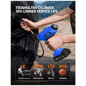 ESTRUTURA INFLÁVEL METÁLICA É composta por cilindro metálico e engrenagem metálica, podendo funcionar continuamente por 20 minutos, a pressão máxima do ar pode chegar a 160 psi, atender a necessidade de 4 pneus por vez, mais eficiente e rápido de usar. FONTE DE ALIMENTAÇÃO DUPLA Fonte de alimentação DC 12V e fonte de alimentação de bateria de lítio recarregável de 20V torna a inflação mais fácil. O fundo é estável o suficiente para que você não precise segurá lo. Você nem mesmo precisa se preocupar em ficar sem bateria durante a viagem. DESLIGAMENTO AUTOMÁTICO LCD APRESENTA MAIS Predefina o valor desejado e o compressor de ar desligará automaticamente quando o valor for atingido. A tela LCD retroiluminada exibirá o valor da pressão do pneu desejada e a pressão atual do pneu. A unidade de pressão do ar pode ser alternada entre bar, kPa e PSI. INFLAÇÃO E CARGA RÁPIDA Ar , Eletricidade A tensão de trabalho de 20 V fornecida pela bateria de lítio pode inflar rapidamente, pneus de tamanho 195, 65 , R15 podem ser abastecidos em apenas 4 minutos. A bateria de lítio de alta eficiência de 2000mAh pode carregar 4 pneus do mesmo tamanho ao mesmo tempo, e o carregador exclusivo permite que a bateria vá de 0 a cheia em apenas 1 hora. MÚLTIPLOS FINS FÁCIL DE USAR O compressor de ar é compatível com SUVs, carros, motores, bicicletas e produtos infláveis do tamanho de basquete. Nota não é adequado para pneus de caminhões grandes. Acompanha bolsa de zenamento exclusiva, fácil de transportar. A luz LED também permite que você infle no escuro Marca: Não Informado