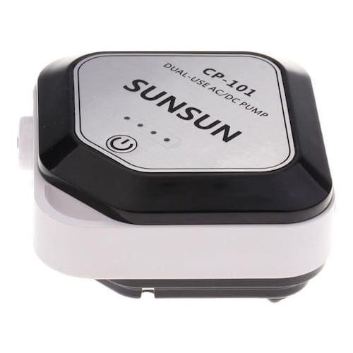 Compressor ar no-break a bateria CP-101 Equipamento Indispensável de emergência para o aquário, excelente assessório para pescaria ou transporte de peixes vivos ou iscas. Acabamento de proteção contra umidade. (não é submergível). Proporciona 20 horas de uso contínuo (Bateria com 100% de carga). Opção para uso intermitente liga 20 segundos/desliga 20 segundos com autonomia para até 40 horas (bateria com 100% de carga). Para uso como no-break deve ser instalado no aquário como compressor oxigenador ou decorativo, em caso de queda de energia elétrica, continua acionado pela bateria. Não dispõe de programação que possa ficar desligado e ligue somente em quedas de energia. Dispõe: Mostrador de carga da bateria. Filtro de ar com refil. Pezinhos de borracha anti-vibração e silenciador. Acessórios: 1.5mt de mangueira silicone 4mm; 01un. Difusor de pedra porosa; 01 refil filtro de ar Kit de presilha e suporte; 01 Fonte bivolt; 01 cabo entrada em USB. Instruções básicas: Pressione 3 segundos o botão para ligar; Pressione o mesmo botão para optar por Funcionamento contínuo ou com intervalo; Pressione 3 segundos para desligar. Dados técnicos: Bateria 2200mAh DC 5V Power 1w Fluxo 1,5 l/min. Medidas: 10x10,5x5cm