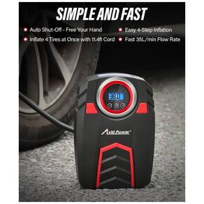 Desligamento automático e inflação rápida Com o design de desligamento automático, basta pré ajustar a pressão do pneu com os botões e e começar a encher, o inflador de ar desligará automaticamente quando atingir a pressão predefinida . Inflação rápida com máx. taxa de fluxo de 35L, min, muito mais eficaz e mais rápido do que a bomba de pneu tradicional. Cabo longo e luz LED de emergência Equipado com cabo de alimentação de 3m de comprimento, torna o enchimento um trabalho suave, pois você pode encher 4 pneus de uma só vez sem ligar para frente e para trás ao trocar os pneus. Projetos de luz LED embutidos para trabalhar à noite ou em locais escuros ajudam você a lidar com as emergências. Manômetro digital 3 unidades de medida PSI, KPA, BAR podem ser escolhidas e mostradas no display LCD. Este inflador de pneus compacto também pode ser como um medidor de pressão dos pneus para verificar a pressão dos pneus antes de encher. Uso múltiplo com 4 adaptadores de bocal Este compressor de ar portátil é adequado para encher pneus de carros, bicicletas, motocicletas, sedãs e SUVs de médio porte, bolas esportivas, brinquedos de piscina, almofadas, pequenos colchões de ar e outros infláveis. NOTA NÃO é aplicável a veículos comerciais, camiões, camiões a motor ou insufláveis de grande volume Marca: Não Informado