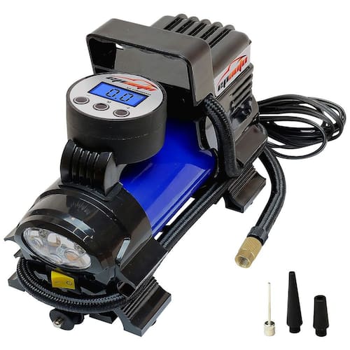 Conveniência conecte diretamente na tomada do isqueiro do seu veículo. 12 VCC, 10 a eres, 120 a 180W. Equipado com plugue de tomada de isqueiro de 12 V CC, NÃO plug de 110 V CA. Vários usos Encha pneus em carros, bicicletas, sedan e SUV de médio porte. Tamanho do motor abaixo de 3,5 litros. O conector de válvula universal para válvula Schrader está pronto para uso. Adaptadores adicionais incluem valor de agulhas para basquete, bolas, adaptadores de cone curto e cone longo para caiaque inflável, acessórios de piscina, etc Capacidade NÃO suporta pneus de caminhão, por exemplo pneus de caminhão leve LT, pneus de caminhão de serviço pesado ou qualquer pneu de caminhão. Fácil de ler 4 unidades de exibição PSI, KPA, BAR, KG , CM LED LANTERNA brilhante. Impedir o excesso de inflação Desligue automaticamente ao atingir a pressão do pneu desejada. A proteção contra superaquecimento desliga automaticamente durante a sobrecarga. Patente USPTO NO D875.788 Marca: Não Informado
