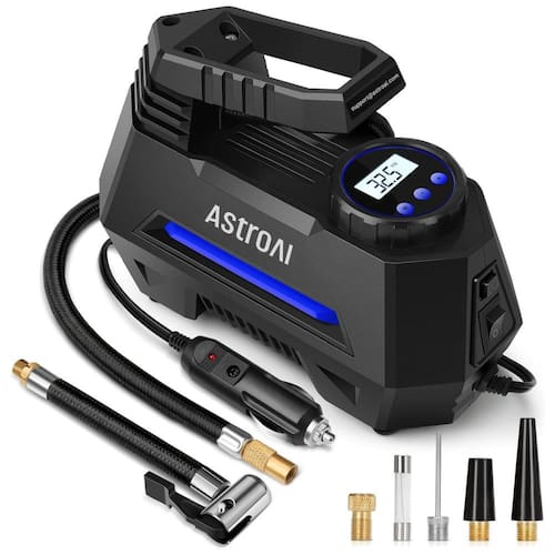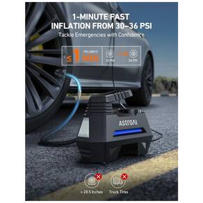 Compressor de Ar Portátil 100 PSI Recarregável com Tela LED e Manômetro Digital, 12V 120W, AstroAI A220BL, Preto e Azul