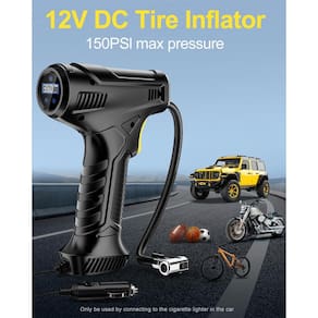 Compressor de ar portátil para inflador de pneu, bomba de ar 150PSI 12V DC para pneus de carro, acessórios de carro com motores de metal e luz LED para carros, bicicletas, outros infláveis - Inflação rápida de 1 minuto: compressor de ar ZOPOM com engrenagem e cilindro de metal de alto desempenho, proporcionando uma vida útil 30% mais longa e pode inflar mais pneus. Pode inflar um pneu 195/50/R15 de 29 PSI a 36 PSI em 1 minuto e de 0 PSI a 36 PSI em 5 minutos - 5 modos de enchimento e desligamento automático: nossa bomba de pneu portátil oferece 4 modos de enchimento predefinidos - para carro, bicicleta, motocicleta ou bolas esportivas e precisa de modo de controle manual preciso, a bomba de pneu ZOPOM atende às suas necessidades de inflação. Ao atingir o valor de pressão predefinido, evita o excesso de enchimento por desligamento automático da bomba de ar - Visor LCD e iluminação LED: o inflador de pneus portátil para carros é equipado com um medidor de pressão integrado e tela LCD, permitindo que você monitore a pressão do pneu em tempo real e a pressão predefinida do pneu com precisão, mantendo você informado sobre o progresso da inflação. Além disso, a bomba de ar para pneus de carro tem uma luz LED brilhante embutida, facilitando seu uso mesmo no escuro - Carregador de carro para isqueiro de 2,8 metros: Este compressor de ar portátil para inflador de pneu vem com um cabo de carregador de isqueiro de carro de 12 V CC de 9,8 pés (2,8 metros), permite que você o ligue ao seu carro. Comprimento do carregador fácil acesso aos pneus dianteiros e traseiros, economizando tempo e energia. Uma ótima solução para emergências a caminho - Compressor de ar portátil para pneus de carro: o design do compressor de ar de pneu com formato ergonômico torna fácil e confortável de usar, seja colocado no chão ou segurado na mão. O inflador de pneu sem fio ZOPOM vem com vários acessórios e pode ser utilizado como bomba de pneu de bicicleta, bomba de ar de motocicleta, bomba de bola, etc. É um ótimo presente para motoristas, ciclistas e aventureiros
