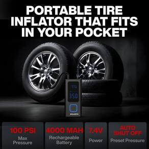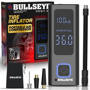 Compressor de ar portátil com medidor de pressão Inflador de pneu Edição de Bolso AIR infla em 2 minutos, compressor de ar pequeno sem fio 4000 mAh bomba de ar portátil para pneu de carro funciona com - Fácil de transportar: o compressor de ar portátil com bomba de ar de bolso, da Bullseye Pro, foi projetado para caber confortavelmente no porta-luvas, mochila ou até mesmo no seu bolso! Se você estiver em uma viagem, aventura de bicicleta ou simplesmente viajando, seu tamanho ultracompacto garante que você esteja sempre preparado. Pesando menos de meio quilo, esta bomba de ar portátil para pneu de carro dá a você paz de espírito onde quer que sua viagem o leve. - INFLAÇÃO RÁPIDA: Apesar de seu pequeno tamanho mini, o Edição de Bolso Air tem um impacto poderoso. Equipado com um motor de alto desempenho, infla a bomba de pneu de carro padrão em apenas alguns minutos. Com uma pressão máxima de 100 PSI, é perfeita para vários veículos, de carros e bicicletas a motocicletas e infláveis. Este inflador de pneu portátil para carro oferece uma solução confiável e rápida para manter você seguro em movimento. Observação: a inflação pode variar com base na temperatura e PSI existente e outros fatores. - Calibre fácil de ler: nunca mais se preocupe com excesso de inflação! O inflador de pneu Edição de Bolso Air Bullseye Pro possui um medidor de pressão digital embutido, permitindo que você defina o nível de pressão desejado. Sua função de desligamento automático inteligente garante que o inflador do pneu pare quando a pressão predefinida for atingida, evitando danos ao pneu e garantindo uma inflação precisa. Este inflador de ar com bomba de ar de bolso para pneus de carro torna a operação fácil e sem complicações. - Cabo USB-C incluído: o carregamento é feito com cabo de carregamento USB-C fornecido (carregador de parede não fornecido). Observação: Se você não recebeu um cabo de carregamento com seu pedido, com o suporte ao cliente e enviaremos um cabo de carregamento USB-C de substituição para cada item pedido.