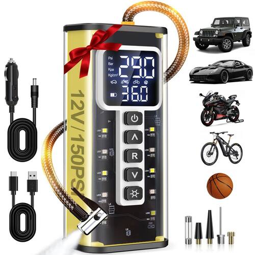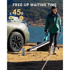 ?Inflação rápida de 5x?Este inflador portátil de pneu de carro possui um motor potente que proporciona um fluxo de ar de 40 L/min, tornando-o 5 vezes mais rápido do que os infladores tradicionais. Pode inflar pneus de carro de 29 PSI a 36 PSI em menos de 1 minuto. Diga adeus às longas esperas em postos de gasolina — aproveite a conveniência de inflar seus pneus a qualquer hora, em qualquer lugar. Uma ferramenta essencial para o uso diário - ?Inflação rápida de 5x?Este inflador portátil de pneu de carro possui um motor potente que proporciona um fluxo de ar de 40 L/min, tornando-o 5 vezes mais rápido do que os infladores tradicionais. Pode inflar pneus de carro de 29 PSI a 36 PSI em menos de 1 minuto. Diga adeus às longas esperas em postos de gasolina — aproveite a conveniência de inflar seus pneus a qualquer hora, em qualquer lugar. Uma ferramenta essencial para o uso diário - ? ?Menos comum, tem mais?Equipado com uma bateria de 20.000 mAh e o mais recente chip de eficiência energética, esta bomba de ar atualizada para pneus de carros consome menos energia enquanto infla mais rápido. O design atualizado estende o tempo de funcionamento contínuo de 40 minutos para 1 hora — um aumento de 50% na vida útil da bateria. Passe menos tempo carregando e mais tempo na estrada - ?DEFINA COMO VOCÊ INFLA?Este compressor de pneu oferece 4+N modos predefinidos: carro, motocicleta, bicicleta e bola, além de um modo personalizado para configurações de enchimento personalizadas. Configure e esqueça: o inflador funciona automaticamente, dando a você conveniência com as mãos livres. Perfeito para multitarefas que desejam desfrutar de uma pausa para o café enquanto seus pneus inflam - ? ?Ar de reserva seguro e fonte de alimentação?Projetado com portas de entrada/saída USB-C e USB, este compressor de ar sem fio permite que você encha os pneus sem fio durante o dia e recarregue à noite. A bomba de pneu também funciona como um banco de energia portátil, fornecendo energia de reserva para o seu telefone e outros dispositivos. Um companheiro confiável para emergências e aventuras diárias - ?InFLAÇÃO PRECISA E AUTOMÁTICA?O visor LED integrado e o sensor de pressão de alta precisão permitem que você monitore a pressão do pneu em tempo real com precisão. Quando a pressão predefinida é atingida, a bomba de ar elétrica desliga automaticamente, evitando o excesso de enchimento e garantindo uma viagem segura e sem complicações - ?Bomba de bicicleta tamanho palmeira?Medindo apenas 7,4 x 6,3 x 16,4 cm e pesando apenas 500 g, esta bomba infladora do tamanho da palma da mão é leve e economiza espaço. Guarde facilmente o compressor de ar portátil para pneus de carro no porta-luvas do seu carro, bolsa de selim de bicicleta, suporte de garrafa montado na moldura ou até mesmo no seu bolso. Perfeito para viagens, casa ou uso em movimento - ?Atendimento ao cliente excepcional?Garantimos nosso produto com uma garantia de 2 anos e suporte on-line 24 horas por dia, 7 dias por semana. Se você tiver alguma dúvida sobre o compressor de ar para carro ou seus acessórios, nossa equipe está aqui para fornecer assistência profissional e oportuna. Sua satisfação é nossa prioridade