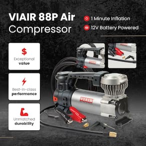 VIAIR Compressor de ar portátil On/Offroad 88P - 00088 para carro, caminhão, SUV e RV | Bomba resistente de 12 V 120 PSI, clipe jacaré, mandril giratório - Compressor off-road portátil (modelo: 88P, 120 PSI, pneus de 83.8 cm) - O compressor de ar portátil de caminhão 88P: prepare-se para trilhas robustas com este compressor de ar robusto de 12 V, projetado com entusiastas offroad em mente. Seu motor resistente e sem engrenagens e operação livre de manutenção são perfeitos para enfrentar terrenos difíceis. Ultracompacto e armazenável em seu próprio estojo de transporte, é uma ferramenta essencial para qualquer aventura off-road, combinando confiabilidade com conveniência. - Desempenho em movimento para veículos, bicicletas e equipamentos esportivos: carros, caminhões, SUVs, Jeeps, veículos off-road, 4x4s, lado a lado, trailers, motocicletas, bicicletas de estrada, mountain bikes, bolas e jangadas. *Instruções: Prenda os grampos de bateria à bateria do seu veículo e ligue o motor. Conecte a uma haste de válvula e ligue a unidade. Quando necessário, use o adaptador de válvula Presta de bicicleta incluído. - COMPONENTES INCLUÍDOS: O mini compressor de ar de 12 V tem uma mangueira de ar de 4,9 m, cabo de alimentação de 3 m, medidor de pressão embutido, bolsa de transporte de luxo, 3 pontas de enchimento (bocal de 3/40.6 cm, bocal de 5/40.6 cm e adaptador de agulha) armazenadas no compressor e adaptador de válvula Presta. Características exclusivas: luz de trabalho LED, mandril de pneu torcido de latão sólido. - Especificações de alta capacidade para pneus grandes: compressor de ar elétrico pequeno opera em 12 volts, proporciona uma pressão máxima de trabalho de 120 PSI com um ciclo de trabalho de 25 minutos a 30 PSI; Capacidade de fluxo livre: 1,47 CFM. Tamanho máximo recomendado do pneu: 84 cm. Enche um pneu 225/60/18 de 20 a 30 PSI em 50 segundos ou menos e é 85% mais rápido do que os principais concorrentes. Dimensões: 24 cm C x 8 cm L x 14 cm A; 2,2 kg. - Qualidade confiável com VIAIR – por mais de 25 anos, nossa empresa americana tem fornecido compressores de ar portáteis e infladores de alta qualidade. Nosso compromisso com testes contínuos e refinamento resulta em desempenho duradouro.