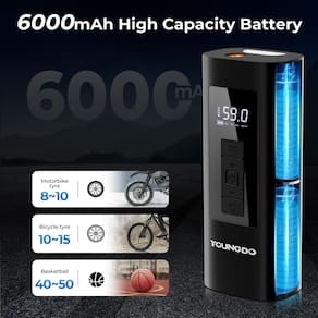 Compressor de ar portátil com inflador de pneus - 🚴?Inflador super rápido com extrema precisão?A bomba de ar de bateria de 6000 mAh inclui uma porta tipo C e um cabo de carregamento do carro. Leva apenas 70 segundos para encher os pneus de bicicleta de estrada 700* 25C. A bomba de bicicleta pode encher 6 pneus de carro ou 15 pneus de bicicleta de corrida, longe do problema de baixa potência. O inflador de pneus atinge uma pressão máxima de 150 PSI para atender aos requisitos de alta pressão para bicicletas de estrada e carros aerodinâmicos. Sendo mais rápido e altamente preciso, é a escolha ideal para um inflador de pneus! - 🚗?Portátil e versátil?Nosso compressor de ar de tamanho pequeno é fácil de transportar e colocar na estrutura ou na mochila. A mangueira de alta pressão pode ser facilmente inflada de todos os ângulos, incluindo todas as direções desafiadoras. Inflador de pneu portátil equipado com 5 bicos adequados para diferentes tipos de bicicletas, motocicletas, carros, bolas, ringues de natação, etc. - ???Operação automática com um clique?A bomba de ar automática oferece 4 modos de inflação predefinidos (carros, bicicletas, motocicletas e bolas) e 4 unidades predefinidas (BAR, PSI, KPA e Kg/cm²). Com apenas um clique, você pode alternar para qualquer modo que precisar. Ao atingir o valor de pressão predefinido, o compressor de ar portátil YOUNGDO para automaticamente, dando a você a liberdade de relaxar e evitar verificá-lo repetidamente. - 🏍??Tela LCD precisa?Esta bomba de ar para pneus de automóveis é equipada com telas LCD digitais, exibe a pressão dos pneus em tempo real e dados predefinidos da pressão dos pneus. Você pode controlar com precisão a pressão de enchimento por meio da tela, facilitando o monitoramento do status da pressão dos pneus. Além disso, você pode predefinir a pressão desejada do pneu, a bomba do pneu será desligada automaticamente quando atingir a pressão definida. Não precisa se preocupar com o excesso de enchimento dos pneus, tornando-os seguros de usar. - 🚚?Dispositivo 3 em 1?Inflador, banco de energia e lanterna. - Além de servir como um compressor de ar portátil, você pode usá-lo para carregar seu telefone celular, luz de bicicleta, bateria do mecanismo de comutação, etc. A luz LED superior (3 modos de luz) desta bomba de ar pode ser conveniente para você encher e trocar pneus no escuro ou avisar outros veículos à noite. - 🕛?Atendimento ao cliente?Este compressor de ar portátil vem com garantia de 2 anos. Se você encontrar algum problema durante o uso, pela Amazon a qualquer momento. Nós responderemos dentro de 24 horas.