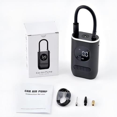 Compressor Portátil Elétrico Pneu de Carro Moto e Bicicleta Cor: Preto Esse compressor de ar sem fio oferece uma solução eficiente para inflar pneus e bolas. Com uma pressão máxima de 150psi, ele proporciona um enchimento rápido e conveniente, ideal para emergências ou uso diário. Seu design compacto facilita o transporte e armazenamento, tornando-o um item essencial para qualquer situação.