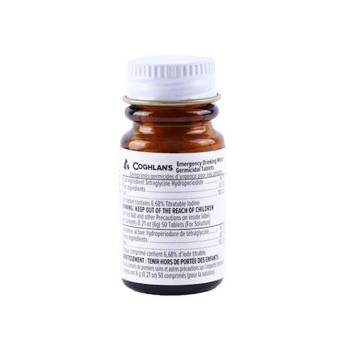 Comprimidos germicidas de água potável Coghlan's — 50 comprimidos para purificação segura de água de emergência, acampamento, caminhada, mochilão e preparação para a sobrevivência
