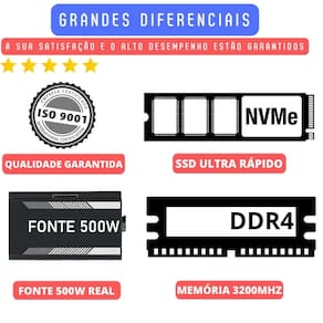 Fonte real de 500W certificada: Uma fonte potente, e pronta para receber atualizações como a instalação de uma potente placa de vídeo. Além disso, a qualidade dessa fonte, garante melhor performance do seu computador.