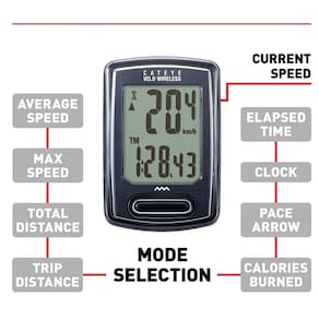 Agora mais fino e elegante, o Velo Wireless é a evolução do nosso computador sem fio simplificado. Além dos dados de viagem padrão em que você confiou, o Velo Wireless agora tem ainda mais impacto com um odômetro programável e tela de menu. Instala-se facilmente em praticamente qualquer bicicleta, incluindo 27,5 e 29'ers. Uma grande tela e recurso de consumo de calorias facilitam a visualização dos benefícios para sua saúde. - TODAS AS SUAS ESTATÍSTICAS FAVORITAS: exibe a velocidade atual, máxima e média, distância total, distância da viagem, tempo decorrido, consumo de calorias, seta de ritmo e relógio. - Economize suas milhas: com a opção de definir manualmente o hodômetro, você não precisa recomeçar sempre que trocar a bateria. - Seguro e leve: o suporte de fecho de correr incluído oferece uma fixação robusta e segura ao guidão. - Não sue nas pequenas paradas: pego em uma luz vermelha? Parando para tomar café? Temos tudo o que você precisa. Seu computador CatEye sabe quando você parou e automaticamente para de contar o tempo e a velocidade média. - DADOS PARA A SAÚDE: O Velo Wireless monitora as calorias queimadas.