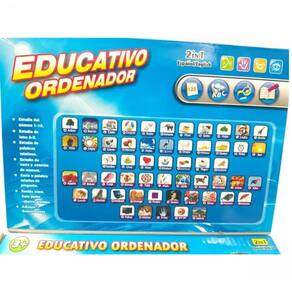 Computador didático para crianças em forma de caderno ou computador ideal para aprender letras, números, somar, subtrair, tem muitas funções em espanhol e inglês, estudo de palavras, músicas, entre outras. Ideal para o desenvolvimento e entretenimento das crianças de hoje. Vem em sua caixa medindo 24 cm x 17 cm aprox. Computador: 15* 12 cm aprox.