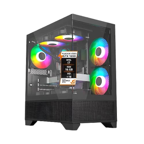 Computador i7 1650 memória 16gb hd 1tb ssd 120gb Os pcs gamer amorim têm uma configuração focada em colecionar vitórias, a linha de pc gamer é ideal para quem busca desempenho, velocidade e qualidade de imagem em seus jogos um pc gamer completo e repleto de componentes potentes, desde gabinete até o processador, esse sem dúvida é o arsenal que você precisa para conquistar o universo dos games. Processador, memória e tudo que você precisa saber Esse pc gamer tem tudo para seus jogos. Equipado com o processador i7- 3770 3 geração , placa de vídeo gt 1650 2gb, hd 1tb, ssd 120gb placa mãe h61 socket 1155, placa de rede 100/1000 mbps e memória ram de 16gb ddr3 que vai te dar a vantagem em cada jogada. A fonte 500w libera todo o seu potencial, e faz acontecer as melhores estratégias. Conquiste a partida, domine o oponente com essa máquina. Porque pc gamer é na amorim Processador intel core i7-3770 3.40ghz 3 geração - 4 núcleos Placa mãe h61 socket 1155, suporte para processadores de 2 e 3 geração para processadores intel core i3/i5/i7 e expansão de até 16gb de memória ram. Placa de vídeo 1650 4gb 128 bits. 16gb de memória ram ddr3 Hd 1tb Ssd 120gb Fonte real 500w bivolt Placa de rede: 100/1000 mbps Sistema operacional windows 10. Interface de vídeo: hdmi, displayport e dvi. Suporta até 3 monitores simultâneos. Está incluso neste anúncio os seguintes itens: 1 cpu com os componentes descritos acima 1 cabo de alimentação 1 adaptador usb bluetooth Marca: Não Informado