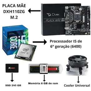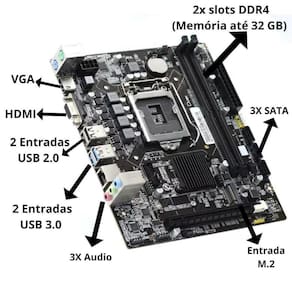 Com um SSD de 240GB, o computador proporciona um armazenamento rápido e confiável. Além disso, possui uma placa mãe modelo H110, com capacidade de até 32GB de memória e entrada M.2.
