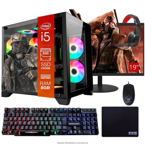 1 Computador Gamer Completo TOB Intel Core i5 SSD 240GB 8GB Gabinete Aquário Teclado Mouse Mouse Pad e Headset Gamer Monitor 19” Windows 10 Pro Trial