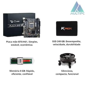 Placa gráfica: integrada Capacidade do disco: 240 gb Capacidade total do módulo de memória ram: 8 gb Computador pc slim completo multipc i3 8gb ssd 240gb win11 Computador slim completo com monitor de 19 polegadas, teclado e mouse. Se você procura por um computador que se adapte perfeitamente às suas necessidades e preferências, a multipc é a resposta especialistas em fornecer máquinas potentes e versáteis. A multipc, acredita que sua experiência deve ser completa desde o primeiro momento. É por isso que enviamos nossos pcs já com windows instalado, com vitalícia atrelada ao equipamento. Além disso, todas as máquinas multipc trazem: - libreoffice, uma poderosa suíte de escritório de código aberto; - atalho para o instalador do wps office na área de trabalho. ambas as opções são excelentes substitutos para o , com ferramentas muito similares e recursos completos para suas tarefas diárias - google chrome pré-instalado, - incrível opção de bloqueador de anúncios na área de trabalho. navegue pelo youtube e outros sites de forma tranquila livre de interrupções Especificações: Marca: multipc Modelo: ms0009cm19 Processador: Intel core i3 - 2 geração Armazenamento: Ssd 240 gb Memória: Tamanho: 8 gb ddr3 Placa mãe: Modelo: h61 ou b75 conforme a disponibilidade no Capacidade: até 16gb Entrada: m.2 nvme Rede: 100/1000 Saída de vídeo: 1x porta vga / 1x porta hdmi Design: micro-atx Usb: 4 x portas usb 2.0 e 2 x portas usb 3.0 Slot expansão: 1x slot pci express x16, rodando em x16 1x slot pci express x1 Gabinete: Gabinetes podem variar de acordo com modelo disponível em loja no ato da compra Alimentação: Fonte: 200w Cooler: Cooler básico universal Conteúdo da embalagem: - 01 computador pc gabinete slim - 01 cabo de força para máquina - 01 teclado e mouse genéricos pretos, tipo office, com conexão via fio usb - 01 monitor led de 19 Resolução: 1440 x 900 60hz Atenção imagens meramente ilustrativas As marcas das peças podem variar de acordo com o disponível em nosso site. Fique tranquilo, sua máquina será enviada com peças de excelente qualidade e vai atender suas necessidades e desejos. Nunca entregamos um modelo inferior ao do anúncio. de 90 dias: - a não cobre o mau uso, danos causados por fenômenos naturais como descarga atmosférica, raios, porta lan queimada etc.... - não aceitamos produtos sem etiqueta da empresa, sem embalagem, sem manuais ou fora da data de . Marca: Não Informado Ean: 7898482137351