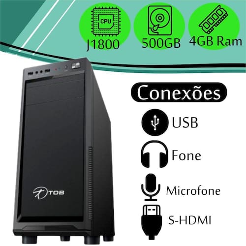 01 Computador TOB Home com Intel Dual J1800 HD 500GB 4GB de Memória Gabinete Preto