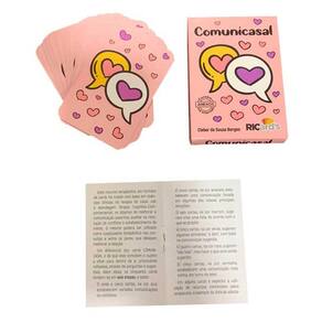 A Terapia Cognitivo-Comportamental (TCC), abordagem estruturada, cientificamente válida e fidedigna, tem como base a capacidade e a potencialidade do sujeito em reestruturar a forma de interpretar a si mesmo, seu mundo nas mais variadas situações e seu futuro. Visto que as emoções e os comportamentos são influenciados pelas cognições, seja no processo de intervenção ou no de prevenção, objetiva-se a reabilitação cognitiva e, consequentemente na qualidade de vida do sujeito e de seus pares. Pensando em terapia de casal, não é diferente. Dessa forma, foram elaborados os cards Comunicasal, como ferramenta coadjuvante à terapia, com o objetivo de contribuir significativamente no desenvolvimento de estratégias de resolução de conflitos, na melhora da comunicação, no resgate do respeito, em quebrar a rotina, em estabelecer metas realistas, entre outros.
