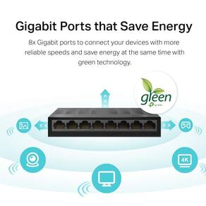 TP-Link Interruptor Gigabit Ethernet Litewave de 8 portas | Divisor Ethernet de mesa | Caixa de plástico | Interruptor de rede não blindado | Plug & Play | Silencioso sem ventilador | Não gerenciado
