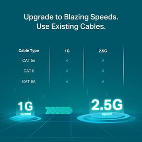 - - : Atualize instantaneamente para 2,5 Gbps sem a necessidade de atualizar para a fiação Cat6, reduzindo os custos de fiação e complicações. *