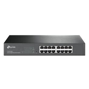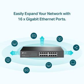 TP-Link Interruptor Gigabit de 16 portas fácil e inteligente gerenciado para desktop/montagem em rack metal resistente com portas blindadas que suportam QoS, Vlan, IGMP e agregação de link