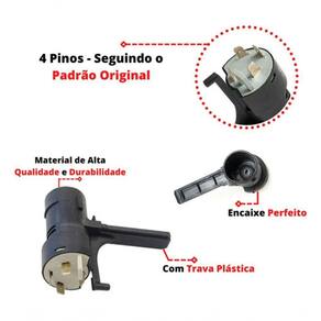 Comutador Elétrico de Ignição e Partida da Trava de Direção, fabricado em Altíssimo padrão de Qualidade e Durabilidade, seguindo exatamente o mesmo padrão de fabricação e características da peça autêntico de fábrica.