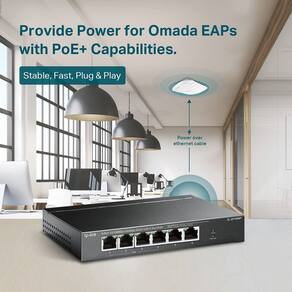 TP-Link Switch Fast Ethernet de 6 portas 10/100Mbps PoE 4 portas PoE+ @ 67W Plug & Play Metal resistente com portas blindadas, modo de prioridade de extensão (TL-SF1006P)