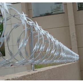 A Concertina possui lâminas pontiagudas, extremamente cortantes e penetrantes, proporcionando uma barreira física de segurança muito eficiente para proteção de áreas residenciais, comerciais e industriais. É fabricada com fita laminada de aço, revestida por uma camada de liga zinco-alumínio que favorece melhor acabamento e proteção especial contra a corrosão.