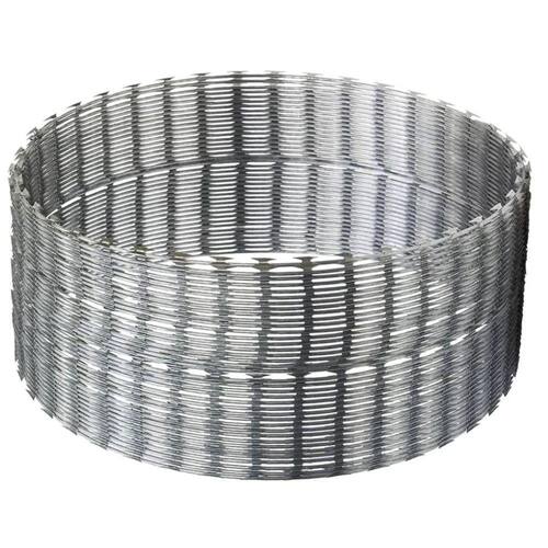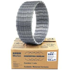 Descrição do ProdutoA Concertina possui lâminas pontiagudas, extremamente cortantes e penetrantes, proporcionando uma barreira física de segurança muito eficiente para proteção de áreas residenciais, comerciais e industriais. É fabricada com fita laminada de aço, revestida por uma camada de liga zinco-alumínio que favorece melhor acabamento e proteção especial contra a corrosão.- Aplicação::: Muros:: Alambrados:: Cercas:: Portões:: Telhados :: Torres- Especificações Técnicas::: Modelo: BTO 22 não clipada:: Comprimento: 22mm (+/- 1mm):: Largura: 15mm (+/- 1mm):: Espaçamento: 34mm (+/- 1mm):: Diâmetro externo do rolo: 450mm:: Quantidade de voltas: 40:: Espaçamento indicado entre voltas: 25cm:: Comprimento do rolo: 10 metros