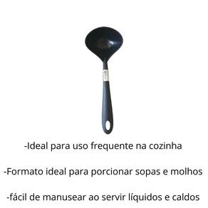A Concha de Plástico Preta é o utensílio essencial para servir sopas, caldos e molhos com praticidade e elegância. Fabricada em plástico resistente e leve, garante segurança ao manusear líquidos quentes e não risca panelas antiaderentes. Seu design anatômico proporciona conforto e firmeza, enquanto a cor preta confere um visual moderno à cozinha. Ideal para uso diário, é fácil de limpar e resistente a altas temperaturas, tornando-se indispensável para quem valoriza funcionalidade e durabilidade nos utensílios domésticos. Especificações: - Marca: Plasutil; - Modelo: 006509; - Dimensões: 28 x 10 x 0,5 cm; - Cor: Preto; - Material: Plástico; - Aplicação: Servir caldos, sopas, molhos e ensopados com praticidade; - Recomendações: Não deixe em contato direto com o fundo quente da panela para evitar deformações; - : 3 meses 90 dias . Conteúdo da embalagem: -01 Concha de Plastico Preta. Marca: Não Informado Ean: 7896042065090