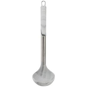 Concha De Silicone e Cabo de Nylon com Inox e Estampa Marmorizada A linda Concha de silicone com estampa marmorizada e cabo com detalhe em inox é utensílio indispensável na sua cozinha. Além de ser muito prática e resistente, é compacta e traz um design diferenciado. Ideal para Panela Elétrica de Arroz ou para qualquer tipo de panela, pois não arranha e danifica o fundo e as paredes do recipiente. Muito prática para lavar, pois não gruda resíduos de alimentos na Colher. Preço por Unidade Características - Material: Silicone, Nylon e Inox - Medidas: 8 cm Largura x 30 cm Comprimento Observação - Lavável na lava-louças - Higiênico e de fácil limpeza - Manuseio simples - Não derrete nem arranha as panelas - Resistente e bastante durável - Suporta altas temperaturas Cuidados - Nunca utilize produtos e materiais abrasivos,como esponjas de aço - Lave apenas com água,detergente neutro e esponja. - Cuidado com objetos afiados e pontiagudos INFORMAÇÕES IMPORTANTES: - A s cor es dos produtos podem sofrer variação de tonalidade, de acordo com a configuração do seu dispositivo ou monitor. Ficha técnica - Cor: Inox - Formato de venda: Unidade - Cor: Marmorizado - Comprimento: 30 cm