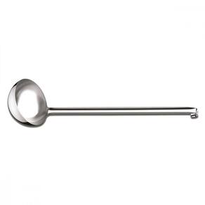 Totalmente feita de aço inox, por isso não solta nenhum resíduo nos alimentos, mantendo-os saudáveis. Altamente durável mantém suas características originais, preservando a beleza, a higiene e a durabilidade do material. Acabamento em brilho.Cabo longo e inteiriço, ideal para uso em cozinhas industriais. Higiênica e de fácil limpeza. Pode ser lavada diariamente na máquina de lavar louças.