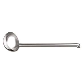 Todo o cozinheiro busca por ferramentas que tornem o seu trabalho ainda mais fácil sem afetar a qualidade de seus pratos. A Concha Terrina Tramontina Empresarial em Aço Inox com Cabo Longo oferece para a cozinha profissional uma oportunidade de auxiliar os mais diferentes tipos de preparos, tornando o serviço ainda mais ágil. Para completar, ela é produzida em aço inox, o que permite uma higienização prática e não libera nenhum tipo de resíduo nos alimentos, mantendo-os saudáveis. Pois sabemos que todo chef se preocupa com a qualidade das suas receitas. Orientações Totalmente feita de aço inox, por isso não solta nenhum resíduo nos alimentos, mantendo-os saudáveis. Altamente durável mantém suas características originais, preservando a beleza, a higiene e a durabilidade do material. Acabamento em brilho.Cabo longo e inteiriço, ideal para uso em cozinhas industriais. Higiênica e de fácil limpeza. Pode ser lavada diariamente na máquina de lavar louças. Observações Durante a lavagem, use apenas sabão ou detergente e uma esponja macia. Outros tipos de produtos, como palha de aço, poderão riscar ou prejudicar o brilho dos talheres. Enxágue bem cada peça a fim de remover totalmente os resíduos dos produtos de limpeza, pois, por serem abrasivos, podem prejudicar o inox. Sempre que possível, use água quente, pois renova o brilho do talher. Após a lavagem, enxugue imediatamente os talheres, caso contrário, as substâncias químicas da água (cloro) poderão causar manchas. Evite atrito entre os talheres durante o processo de lavagem e no armazenamento, para mantê-los sem riscos. Evite o contato das peças com superfícies quentes. Elas provocam a descoloração do produto. Não guarde os talheres em locais úmidos. A umidadetambém provoca manchas. Ao usar a lava-louça, recomendamos retirar os talheres logo que tenha terminado o ciclo ''enxaguar'', a fim de que sejam secados manualmente. Características Gerais EAN13 7891116042359 DUN14 17891116042356 NCM 8215.99.10 Peso Líquido 0,3050 kg. Peso Bruto 0,7950 kg. Metragem 0,016775 m³. Dimensões Embalagem (Compr. X Larg. X Alt.) 585x 185x 155 mm. Dimensões Produto (Compr. X Larg. X Alt.) 550x 130x 117 mm. Capacidade 0,48 l. Espessura 1,2 mm.