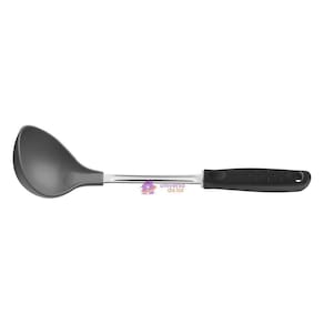 Concha de Nylon que permite uso em temperaturas de até 200 C e haste de aço inox. O cabo de polipropileno possui furo passante possibilitando que seja pendurado na sua cozinha. Utensílio ideal para uso em panelas com revestimentos antiaderentes e cerâmicos, pois não danifica o produto. Pode ir à máquina de lavar louças facilitando seu dia a dia.